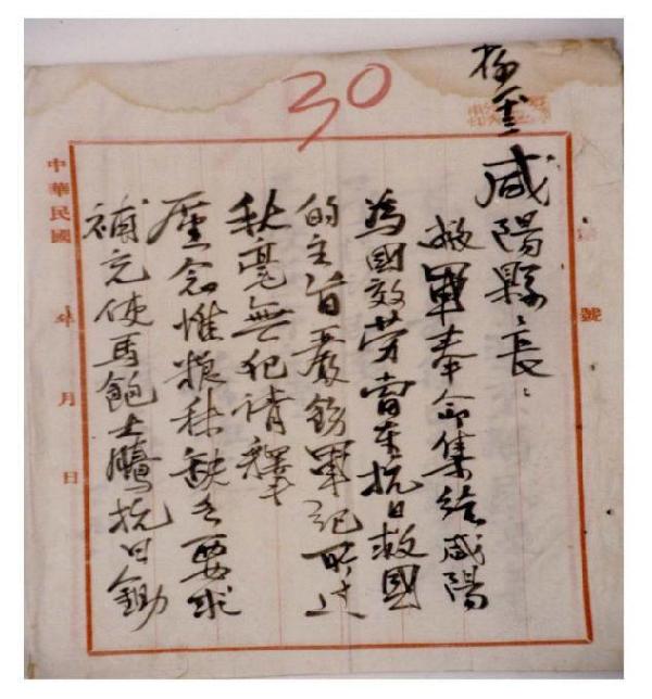 西安事变时徐海东程子华给咸阳县长的信件