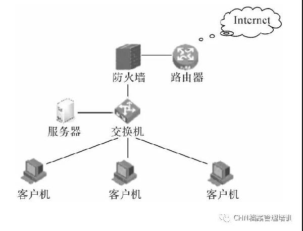 下面是典型的某单位办公网络拓扑图(如接入用户较多,可将交换机扩展为核心交换机和多台接入交换机):